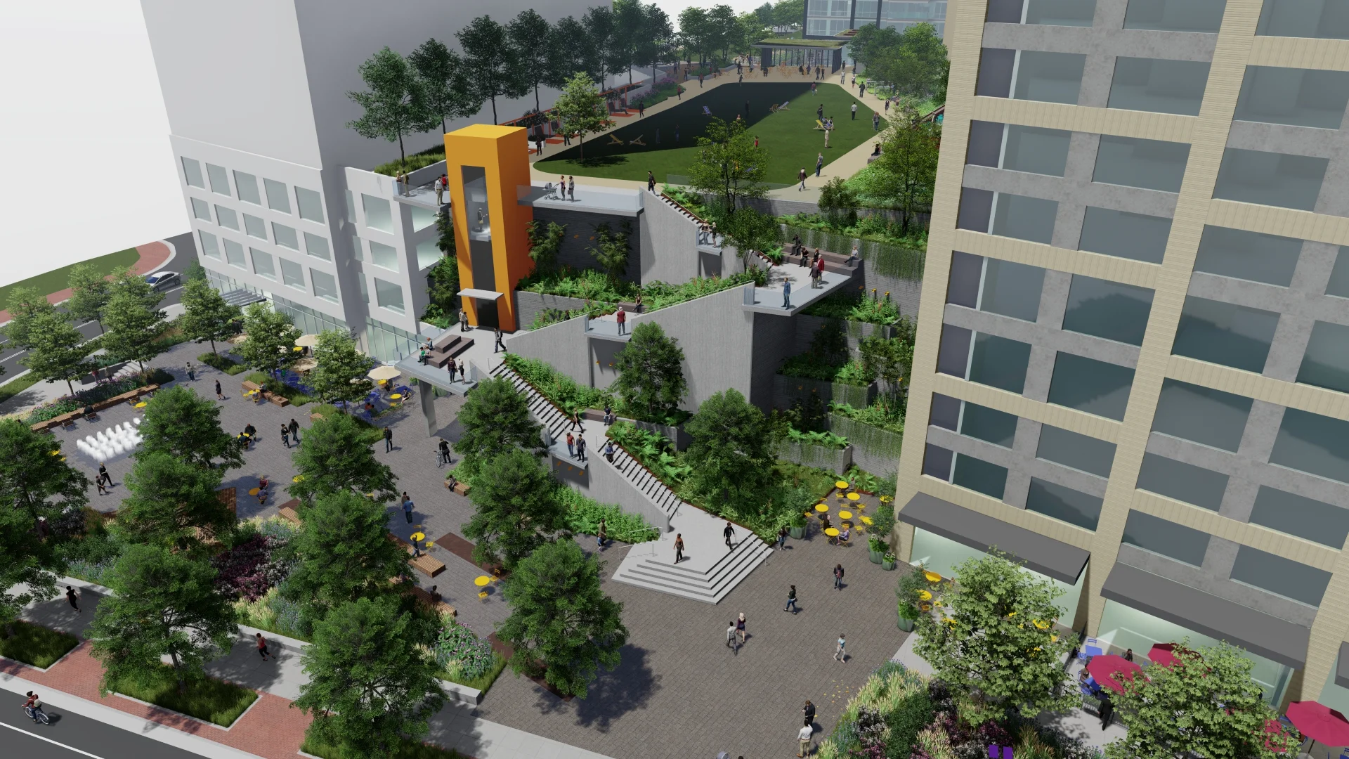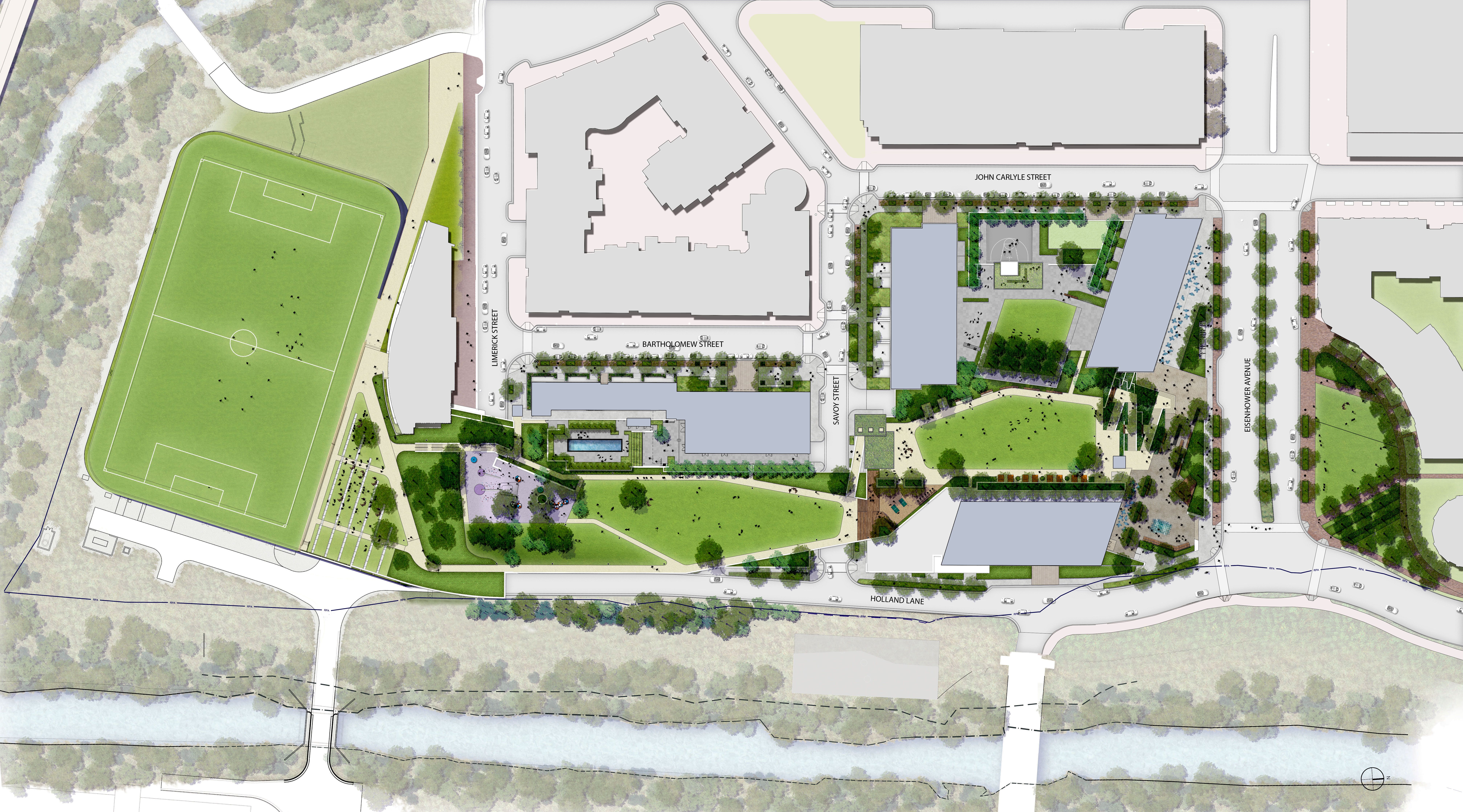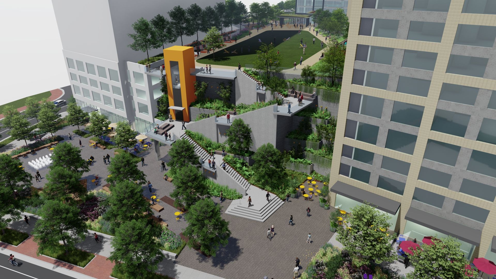 Image: conceptual render of the new public park at the Carlyle Park development.