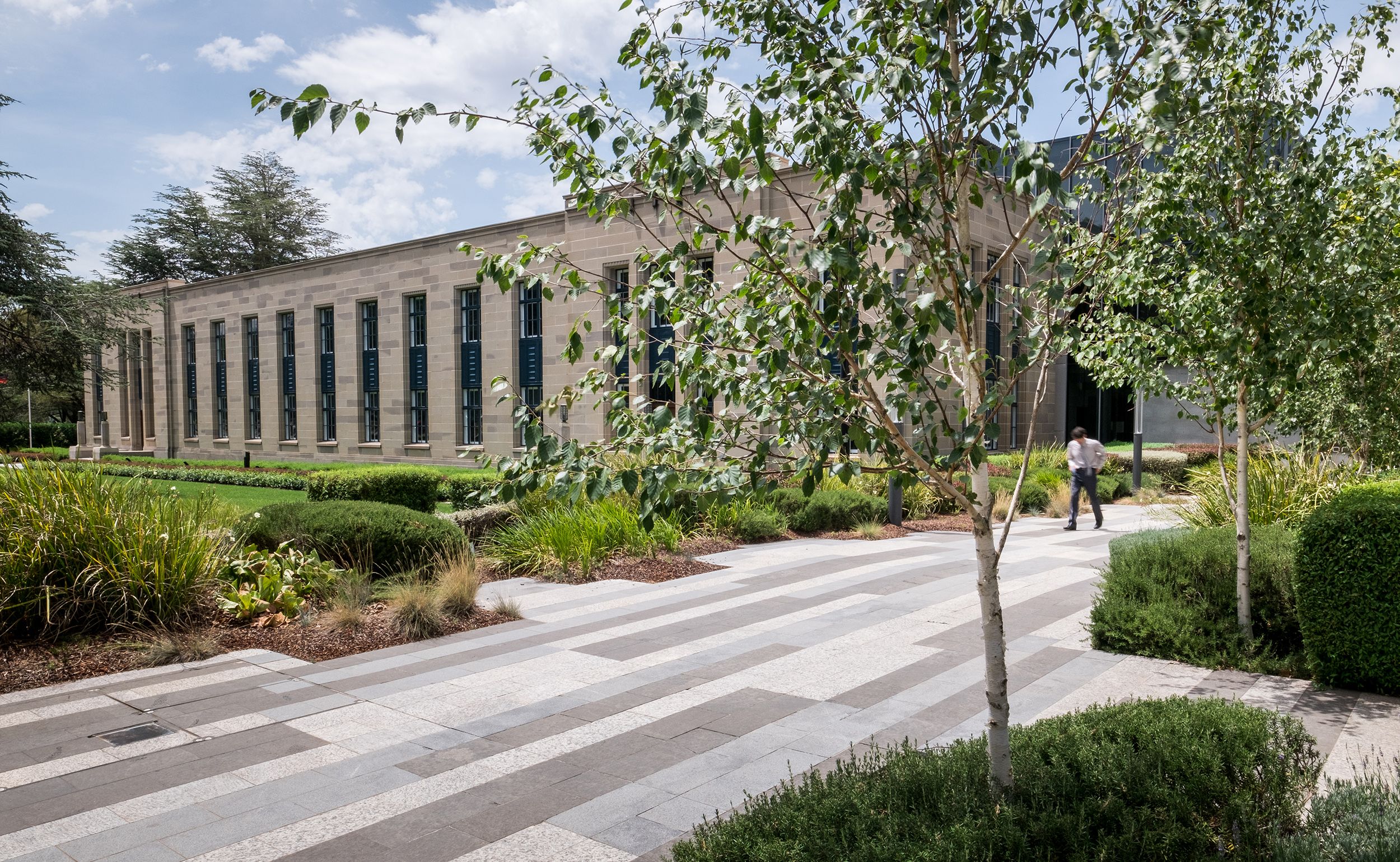 Both buildings are located within the Parliamentary Zone – the symbolic heart of Australia’s National Capital and the geometric centre of the Griffin Plan for Canberra. The master plan sought to respect the Griffins’ ‘garden city’ vision and the intrinsic qualities of the Canberra landscape by providing a campus-style environment.