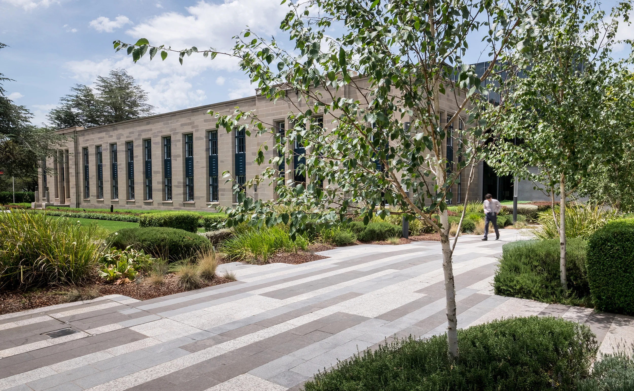 OCULUS was engaged by ISPT Super Property to develop a cohesive landscape master plan for the landscapes at number two and number four National Circuit, Canberra. This included the surrounds and internal courtyards of the refurbished art deco Patents Office and a proposed new building.