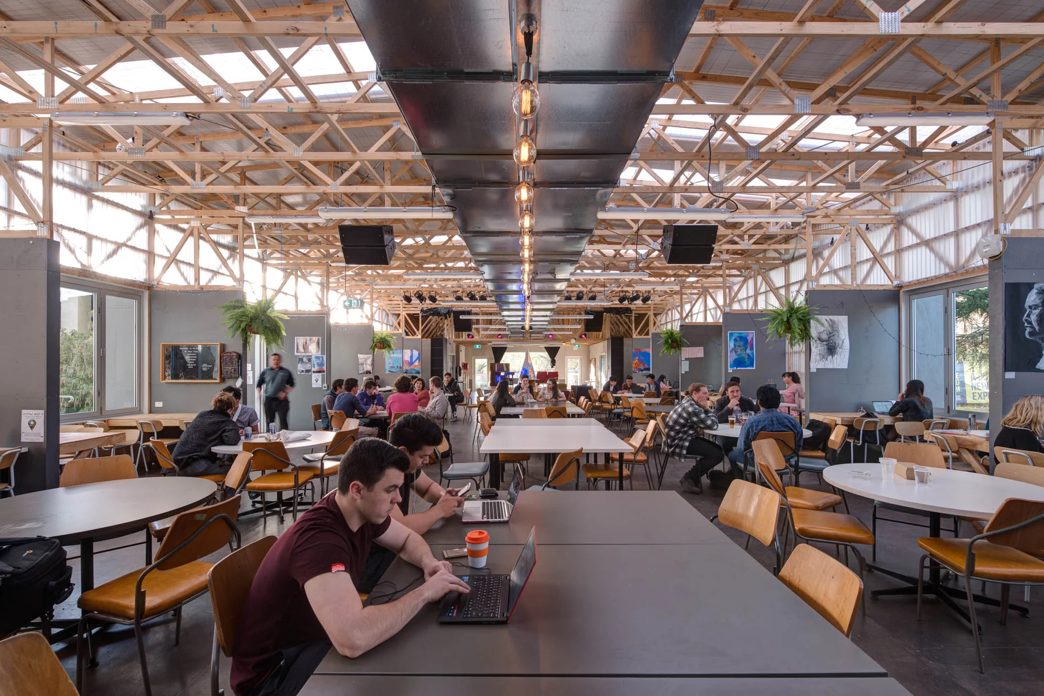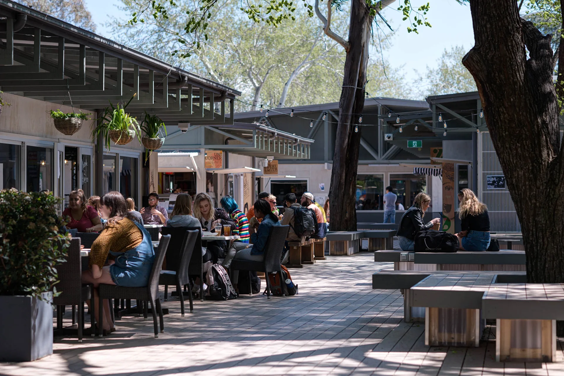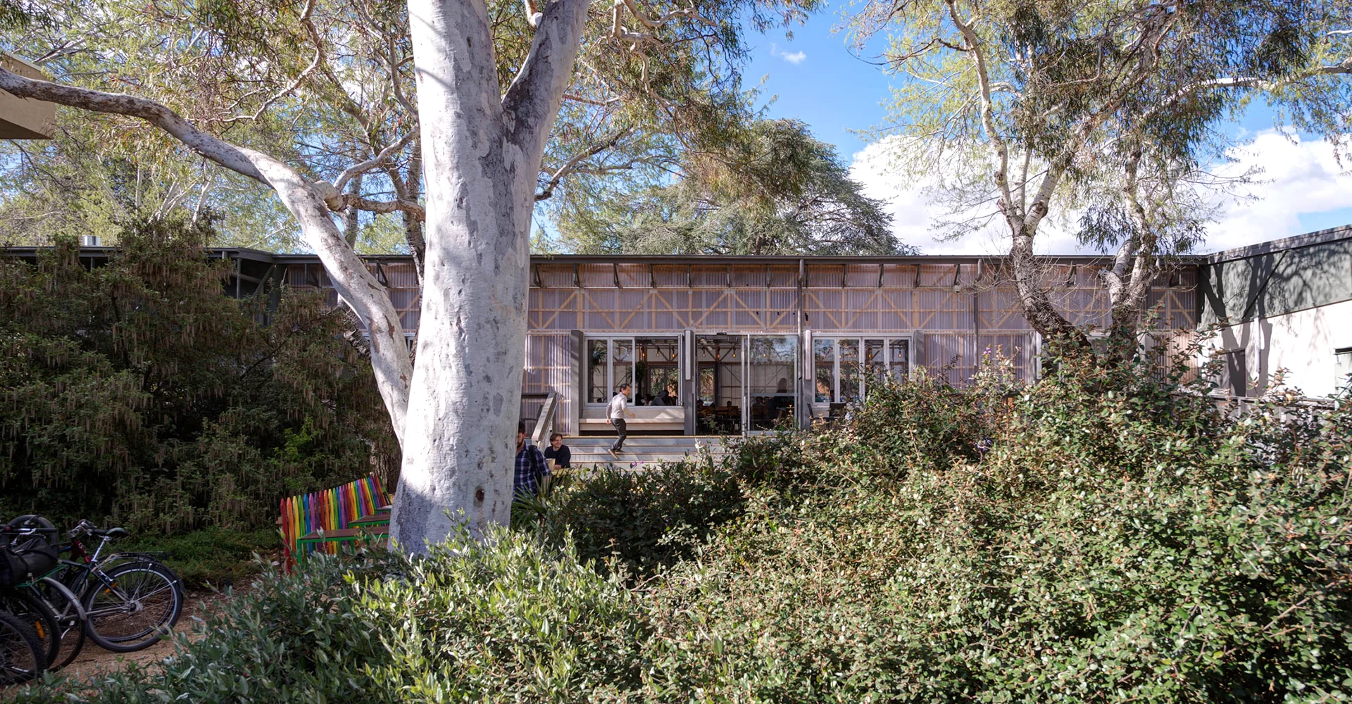 Arranged as an ensemble of new and adapted spaces, the village is integrated into the campus at University Avenue, forming a gateway between the ANU and the city. Conceived as a connective day and night environment for students, the village accommodates the temporary relocation of ANU’s retail core, including student services, common spaces, as well as food and beverage offerings.