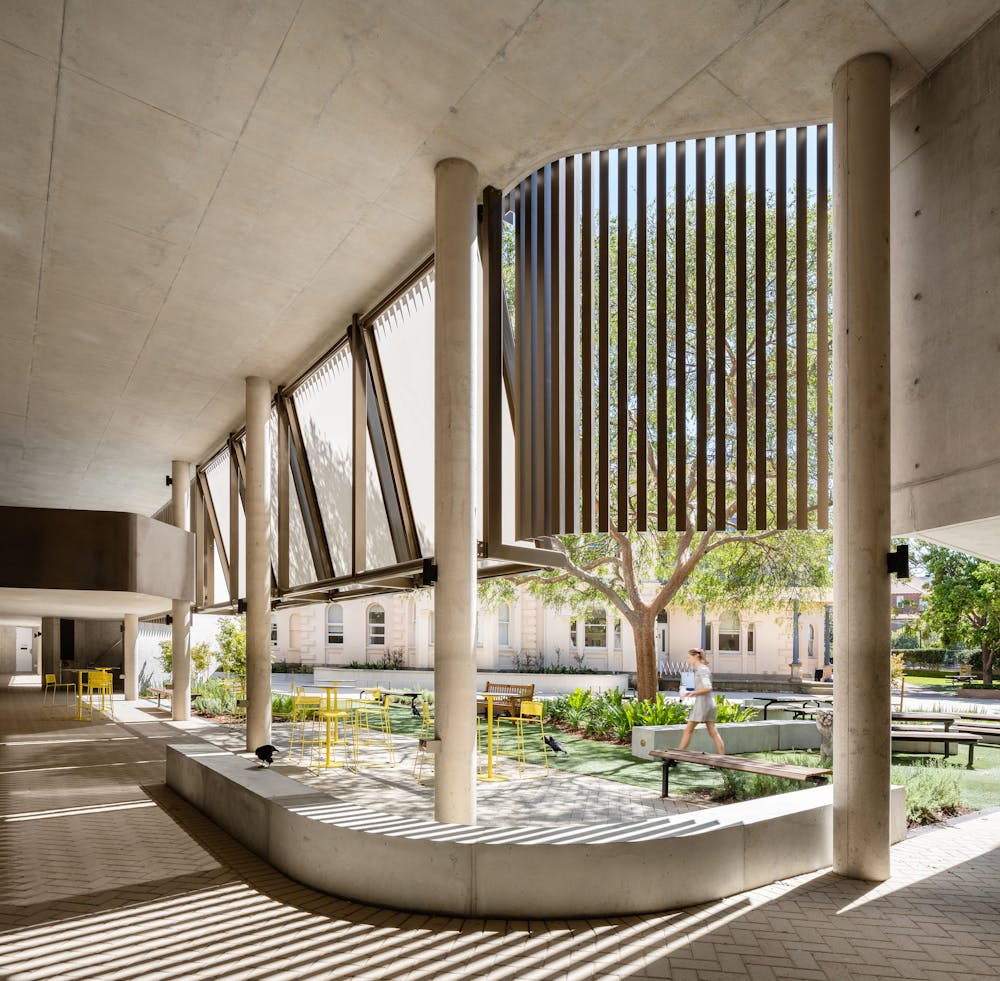OCULUS, in collaboration with BVN, was engaged by Ascham Girls School to provide landscape architectural services for the new English Centre at the school's Edgecliff campus. The project included the creation of a new courtyard that sits immediately adjacent to the Margaret Bailey Building and is characterised by a large open outdoor education space, custom seating walls, and large existing Chinese Elm Ulmus parvifolia at its centre. A number of heritage buildings of various architectural periods define the perimeter of the courtyard, including the historic Glenrock House to the north, the TM Scott Building and Halse Building to the east, and the Library and Margaret Bailey Building to the south.
