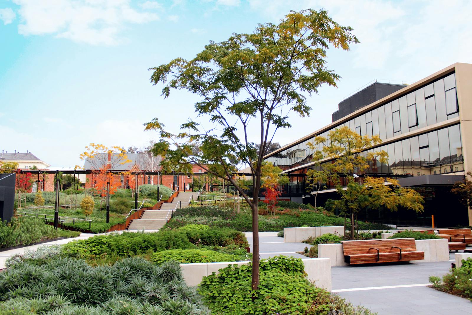 Both the project brief and site posed a number of significant challenges including: the precinct scale and establishment of two-sub precincts, accreted heritage buildings and demolished buildings, the need to support the future growth of Bendigo, considerable topographic transition across the site, significant safety in design considerations for people with limited mobility and where higher levels of safety and security required in the mental health unit, the complexity of designing a large number of multi-level landscapes on structure that were heavily integrated into the building with varying levels of exposure and enclosure, complex user group, client and consultant engagement, access and maintenance and a 25 year design life.