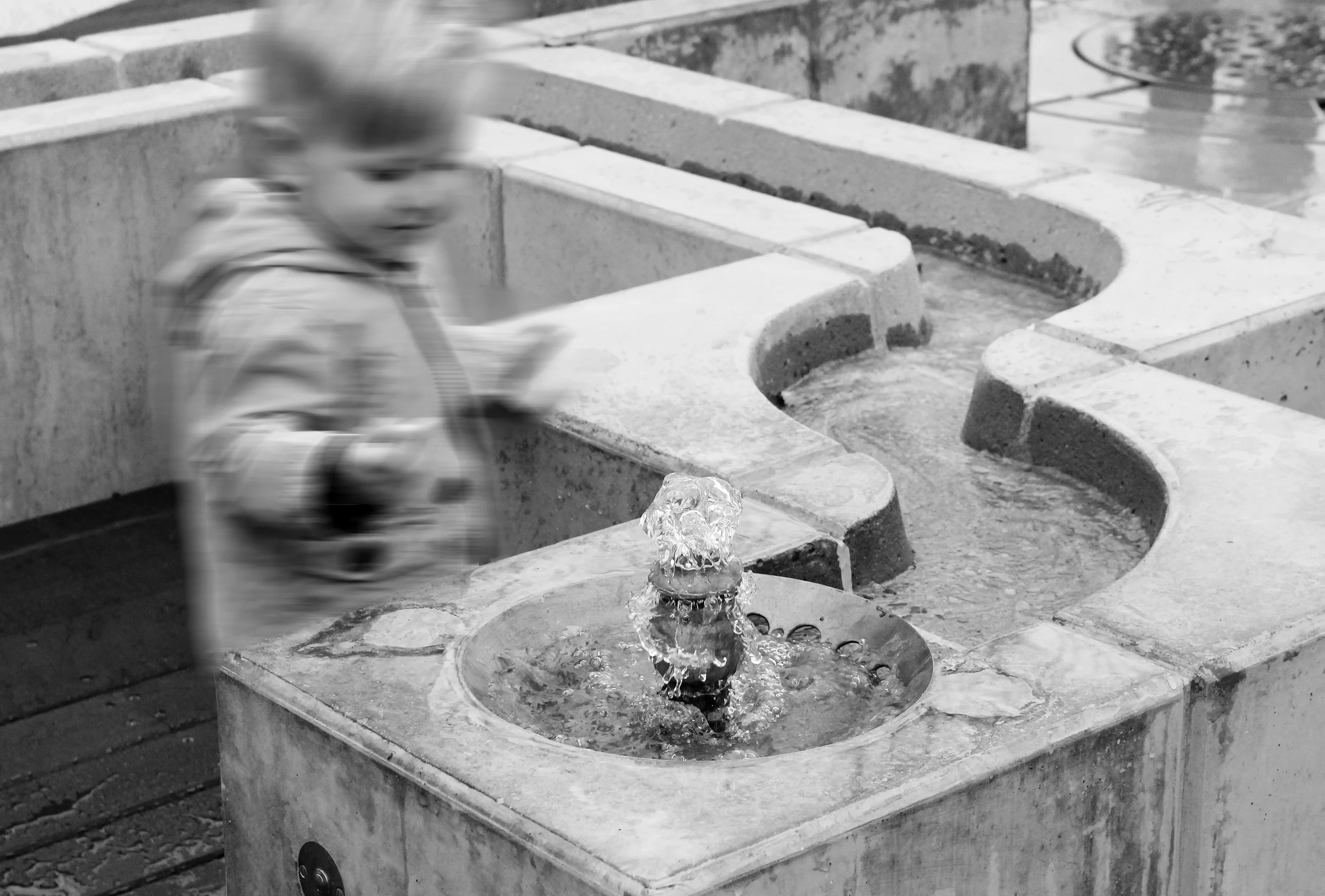 Buluk is an Aboriginal language name meaning wetlands or swamp, chosen as a reflection of the original wetland environment that existed here before the creation of Victoria Harbour. The water play design draws heavily on the site’s harbour and riverside setting and comprises six separate water sources with different types of jets, as well as textured concrete channels with brass deflectors or jewels for sensorial engagement.