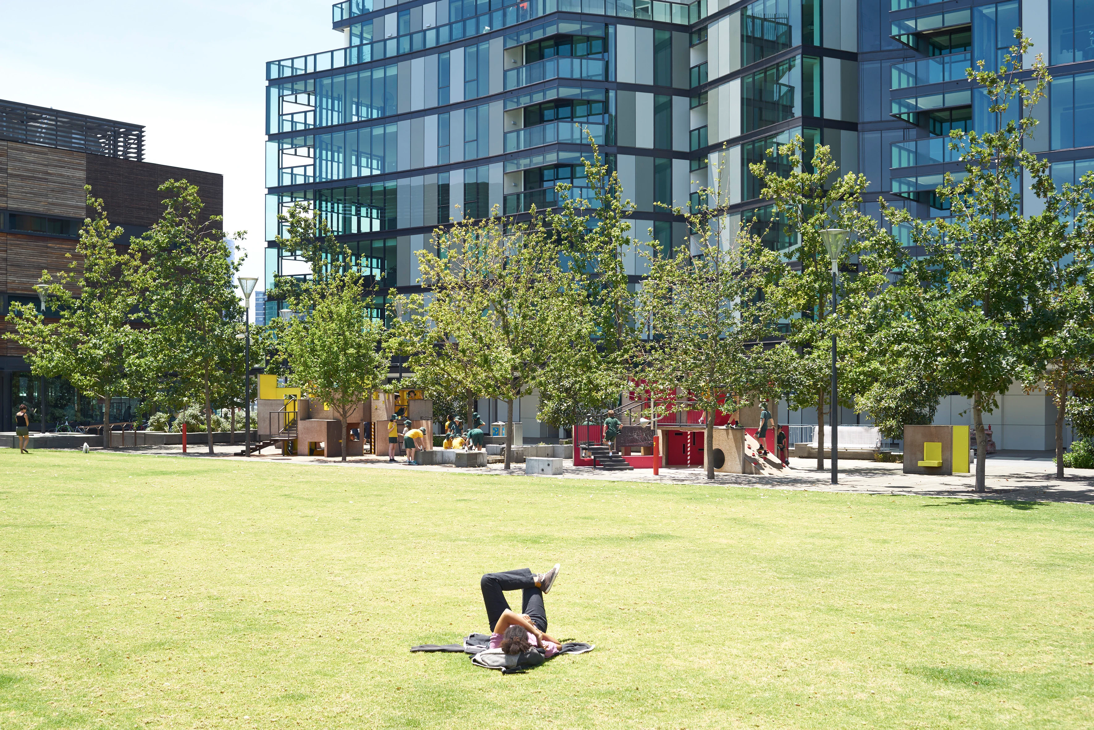 Buluk Park is the new civic heart of Victoria Harbour, a high-density waterfront community in Melbourne’s Docklands. Spanning from the Yarra River to Victoria Harbour, the new public space is the quintessential urban park, providing an everyday space for residents, workers and visitors. The park is book-ended by the Library at the Dock as well as retail and community uses.