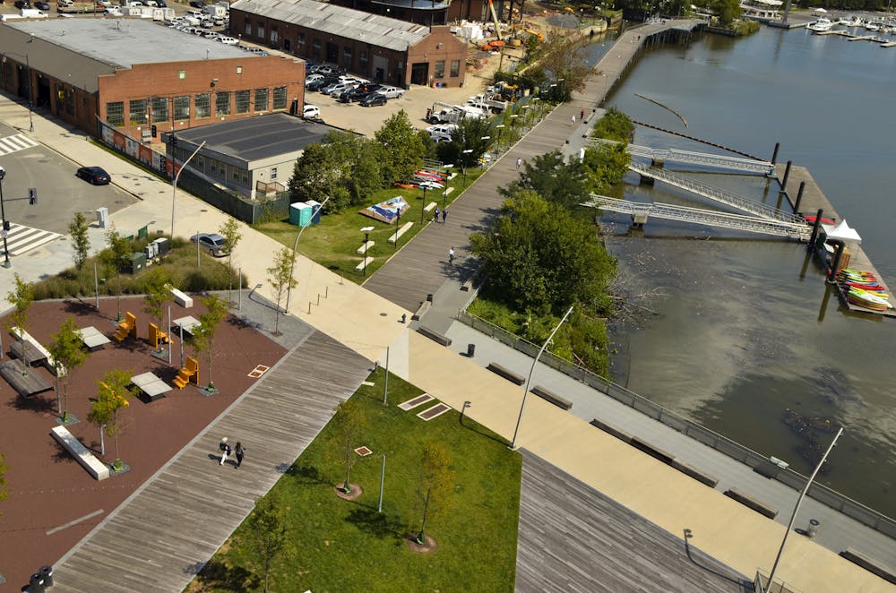 Sited on axis with Nationals Park, the Navy Yard, and Yards Park in Washington DC, this is the first stage of a three-phase redevelopment plan that transforms a former concrete plant into a riverfront destination. The area will comprise office, retail, residential, and hotel development, a marina, and gardens and trails integrated into the 28-mile-long Anacostia Riverwalk system.