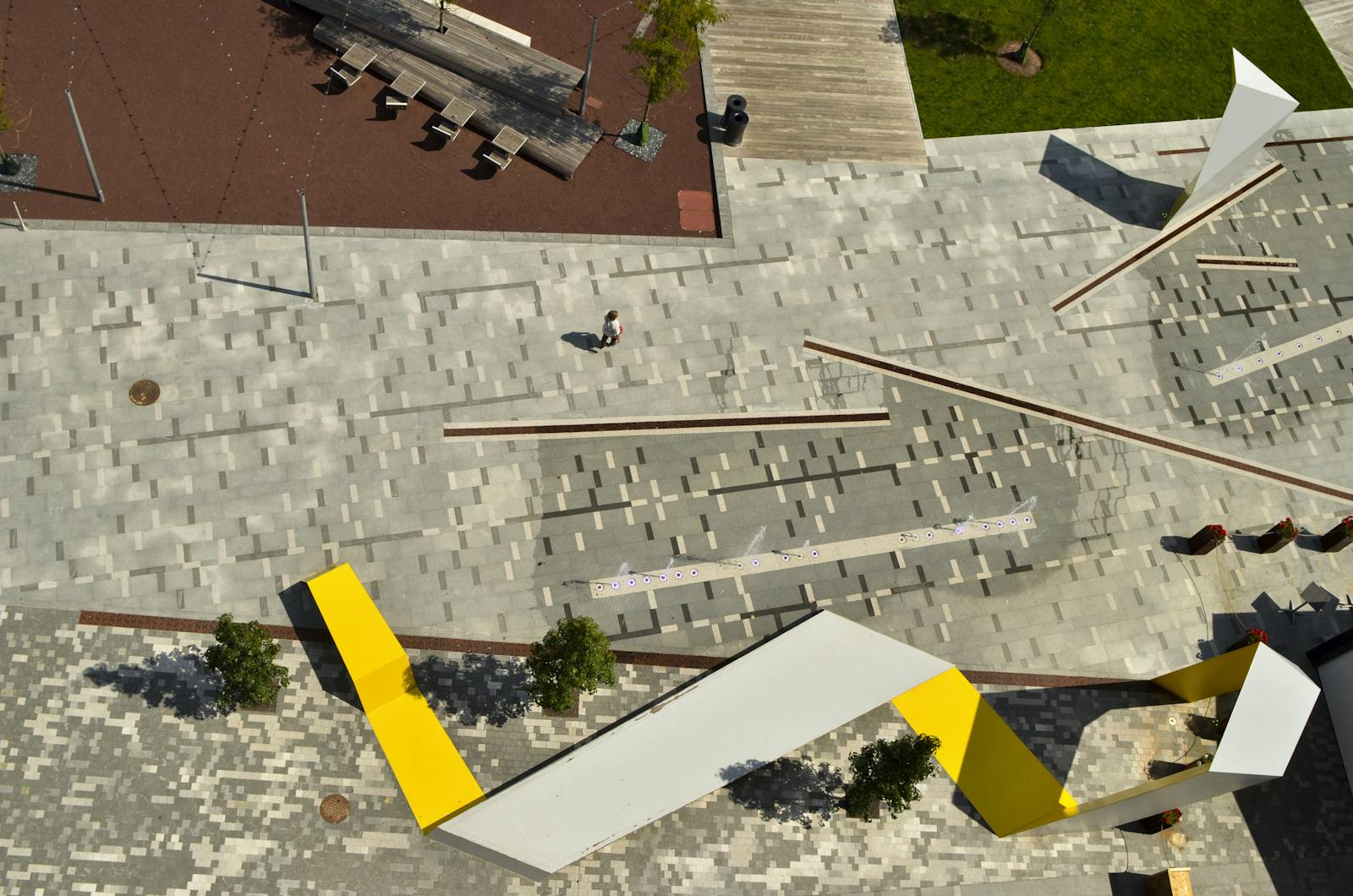 Fronting National’s Park, a vibrant public plaza includes a beer garden, ping-pong tables, an interactive water feature, custom furniture, and a steel sculptural element. A wood esplanade adjacent to the stone-paved plaza unites Dock 79 with the adjacent Diamond Teague Park. OCULUS developed the full build-out master plan as well as all the design and construction documents for phase one of Dock 79.