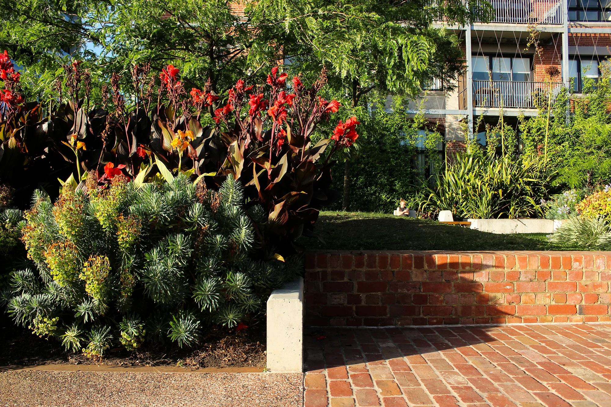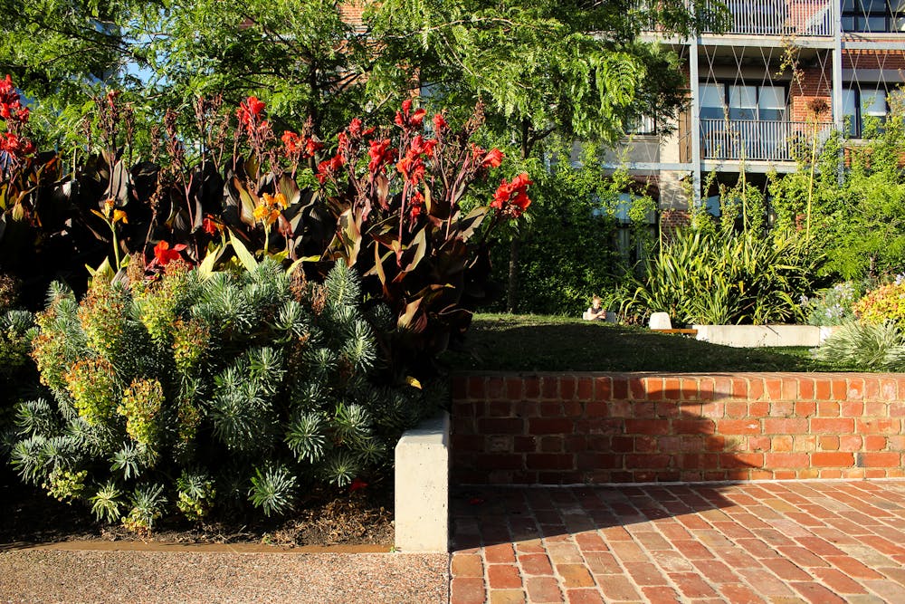 In 2009 OCULUS was engaged by Lendlease to join Hayball and Kirsten Thompson Architects in preparing a new development plan for the site. The plan transforms the site from a private compound into a residential area with new streets and open spaces. A key component of the development plan and subsequent construction documentation was the idea of imbuing the materiality, scale, eccentricity and eclecticism of the surrounding residential area into the new development. This has been achieved by deploying a language of small spaces throughout the site that are formed around the idea of respite, eclectic planting design and the use of singular and recycled materials.