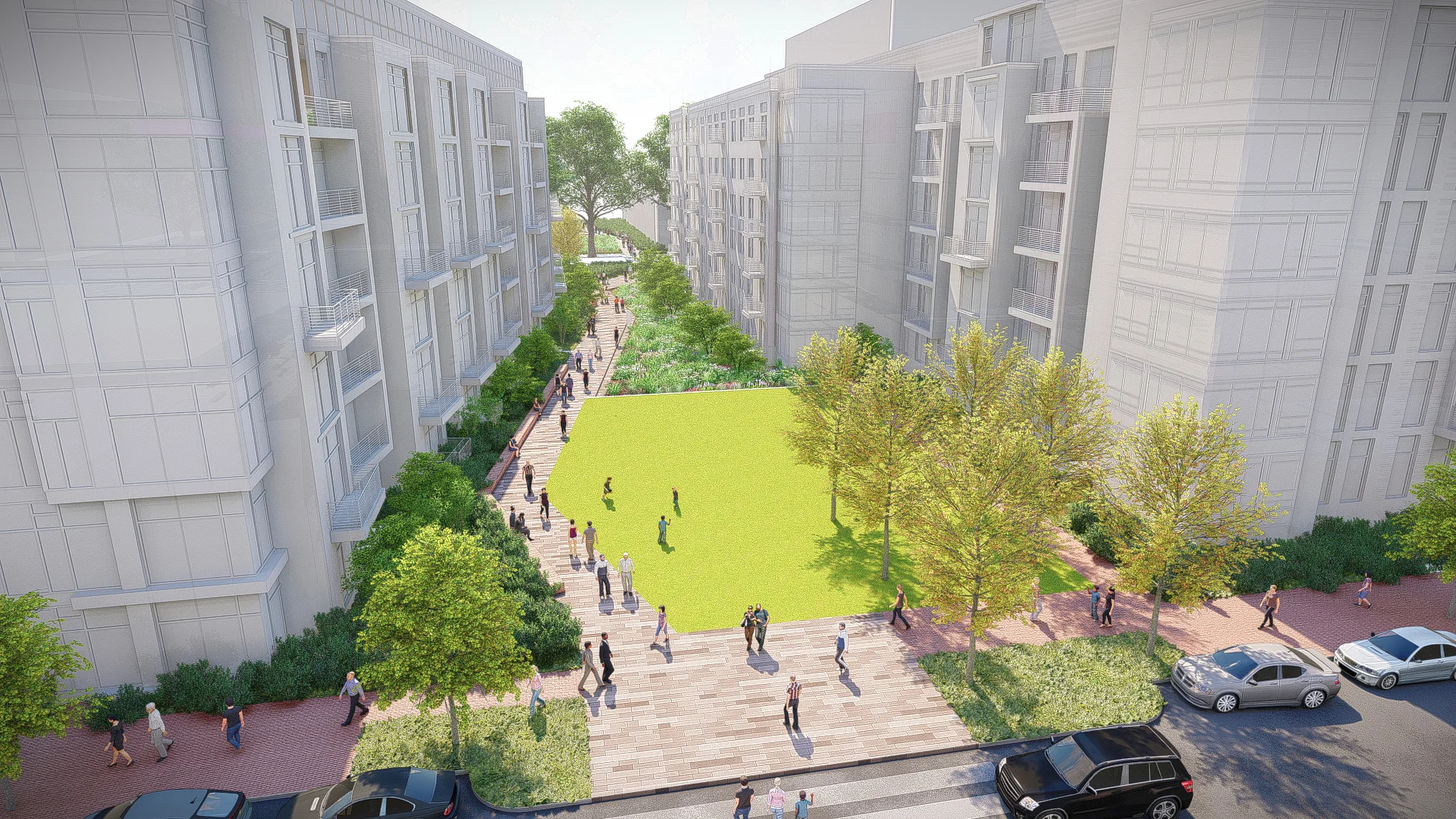 Located within the Wiehle Station transit-oriented development district in Reston, Virginia, Isaac Newton Square is an existing, aging 42-acre office park. The site, composed of vast parking lots and dated office buildings, will be developed into a vibrant mixed-use community offering locally focused amenities. The design is centered on site-specific responses that reference and enhance the established character of Reston. The core of the plan’s organizational principles is based on open space and green corridors.
