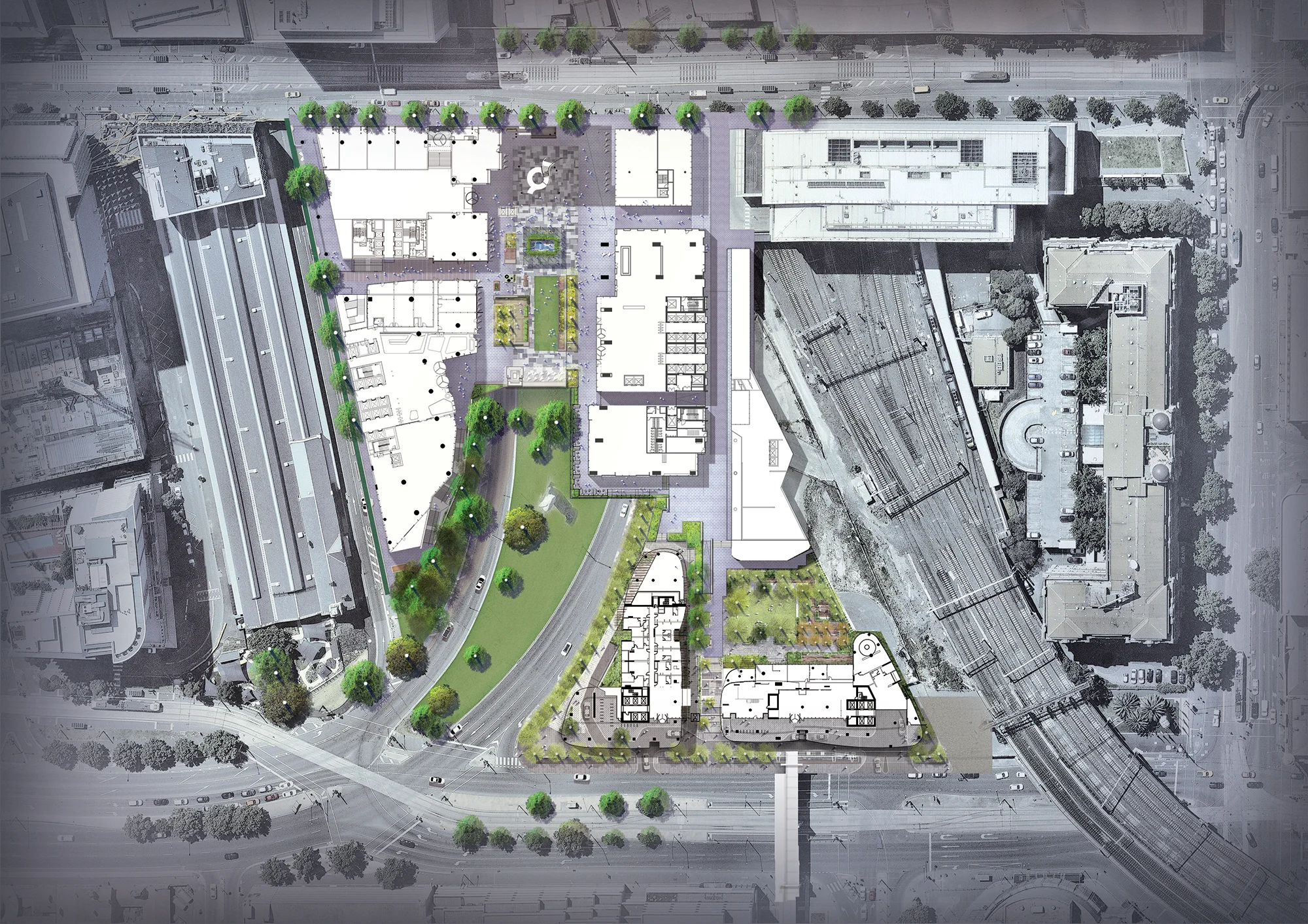 The vision for Melbourne Quarter was to create a new city block containing a vibrant mix of commercial, residential and community uses that will provide a uniquely Melbourne experience; an innovative workplace hub for large companies and small to medium sized businesses, with a collection of next generation office buildings set among a vibrant public domain; and a residential community set among high-quality, sheltered public spaces connected to the surrounding city grid.