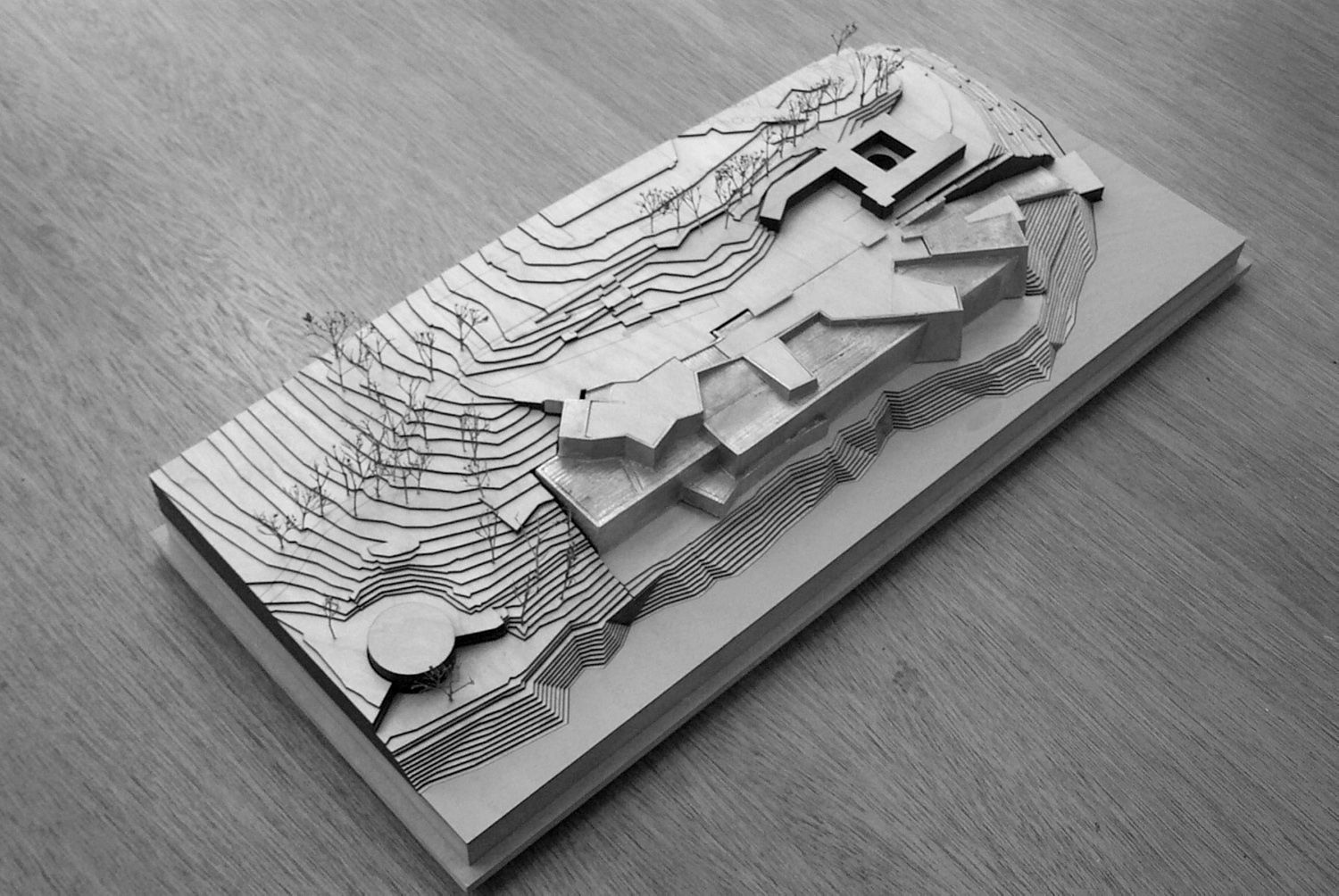 The first was the need to create a spatial logic out of the existing accreted developments on the site, connecting inherited events including a winery, function centre, brewery, two heritage listed houses by Roy Grounds, and an antiquities museum. The second objective was to site a major new museum as well as a number of luxury accommodation units, outdoor performance spaces and a new ferry stop. The landscape response was generated through an emphasis on spatial compression and spatial expansion, structuring new events and installations and providing new connections to existing program.