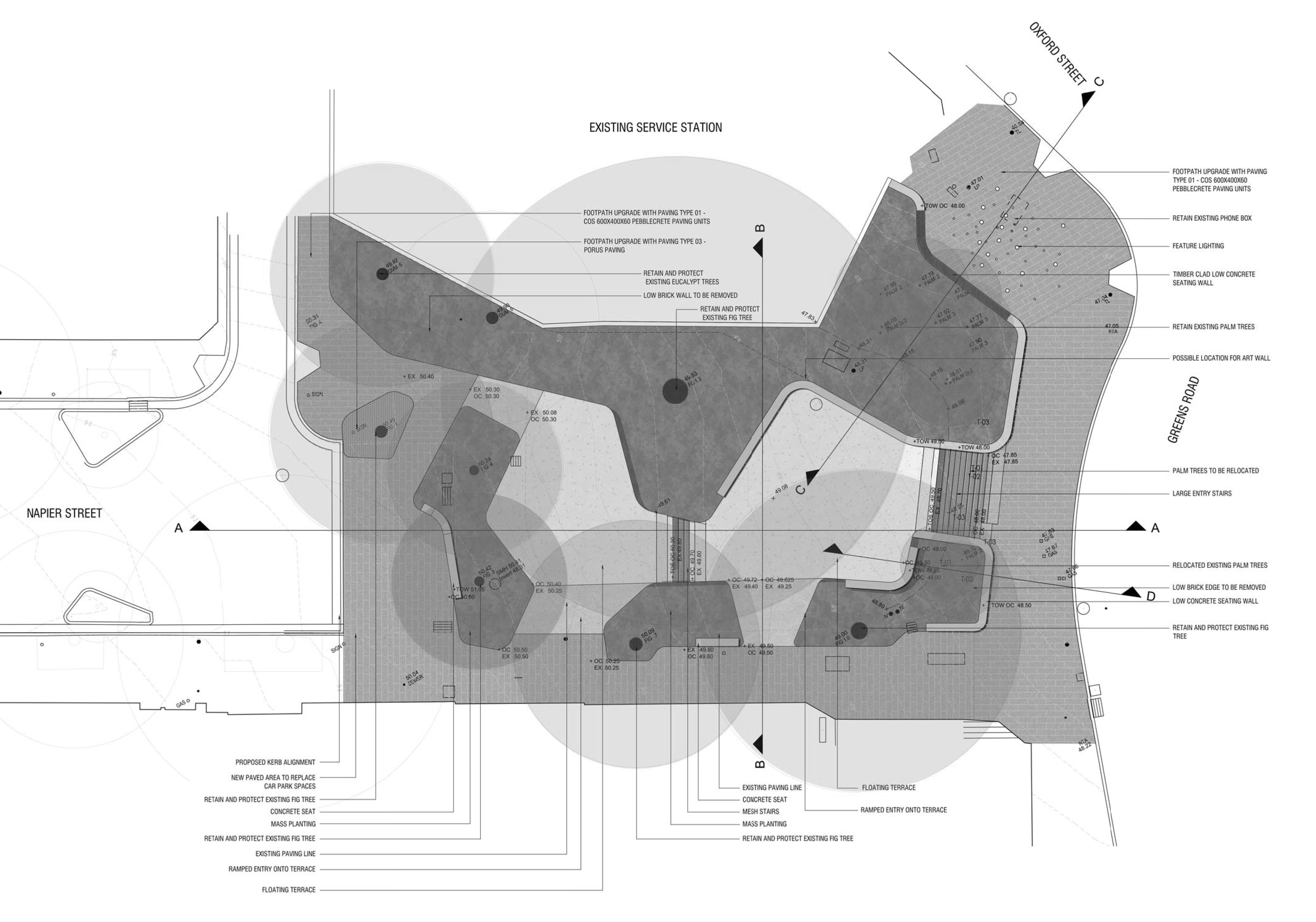 Following an upgrade to the COFA facilities – including new entry foyer, gallery space and café – OCULUS was engaged by the City of Sydney to renew the eastern end of Napier Street. One of the main objectives in the brief was to transform the place into one of Paddington’s premier meeting places and activity nodes by creating a vibrant and inviting public domain.