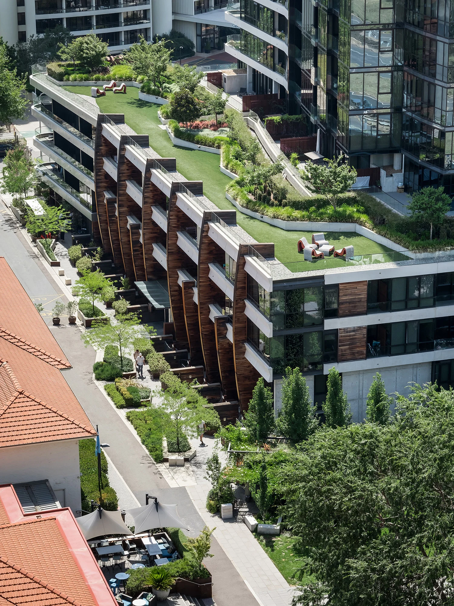 As a result, the precinct is one of the most highly activated areas of Canberra with residents, workers and visitors freely mingling and enjoying the buildings and spaces from early morning until late at night. The project has been developed with sustainable initiatives for both the landscape and the buildings.