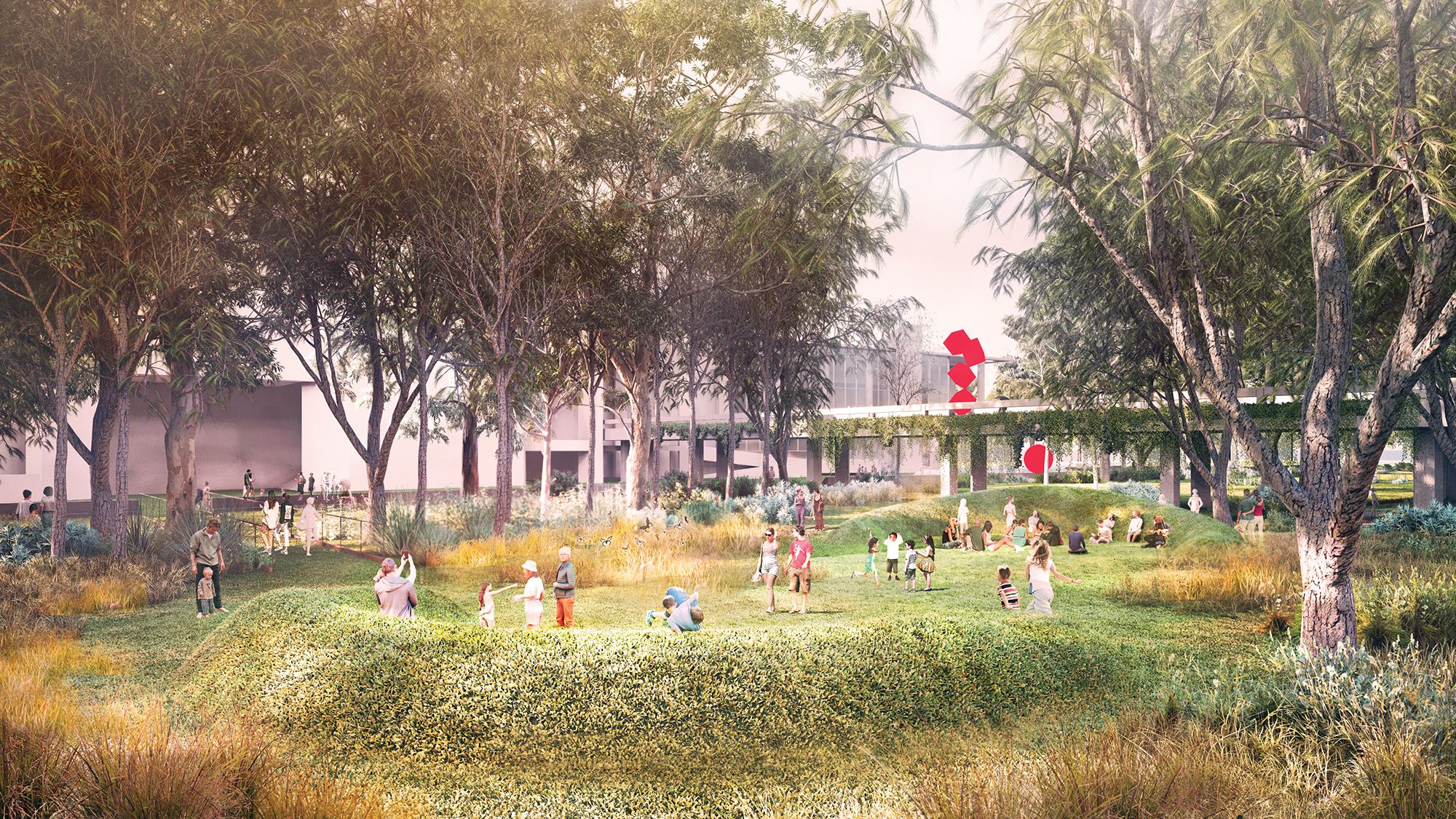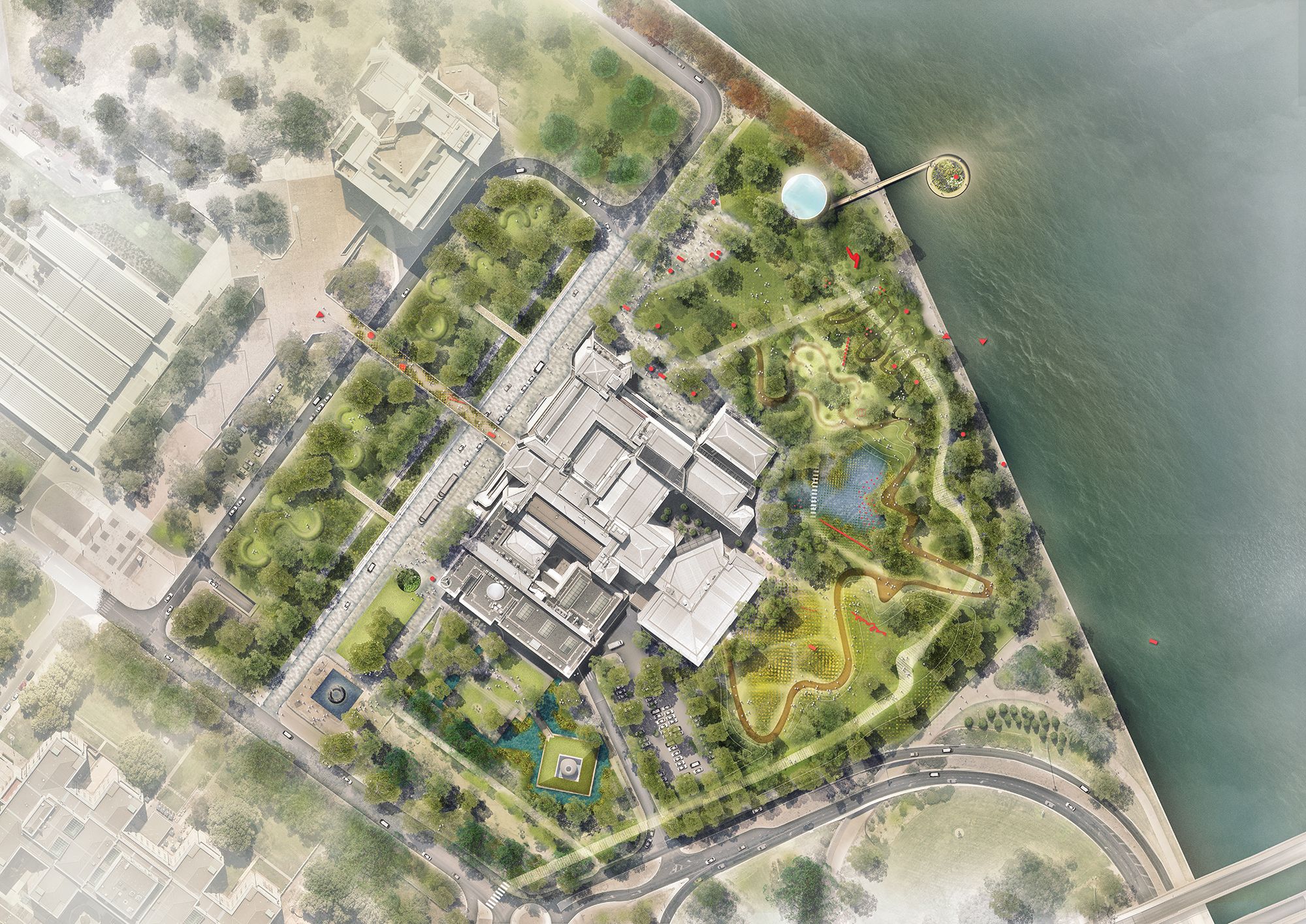 The National Gallery of Australia (NGA) Sculpture Garden Design Competition invited Australian and international designers to create a reinvigorated and unique landscape. The gallery aims to reposition the existing Sculpture Garden as an innovative outdoor art gallery that comprehensively embraces the biodiversity of the Australian landscape.