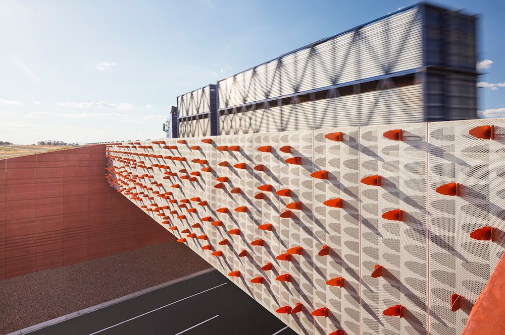 Custom perforated screens feature silhouettes that acknowledge the people of Ballarat’s involvement in World War I and those who died. Timber sourced from the site was reused in furniture and inscribed with commemorative messages, and large site-sourced rocks were incorporated into the new landscape.