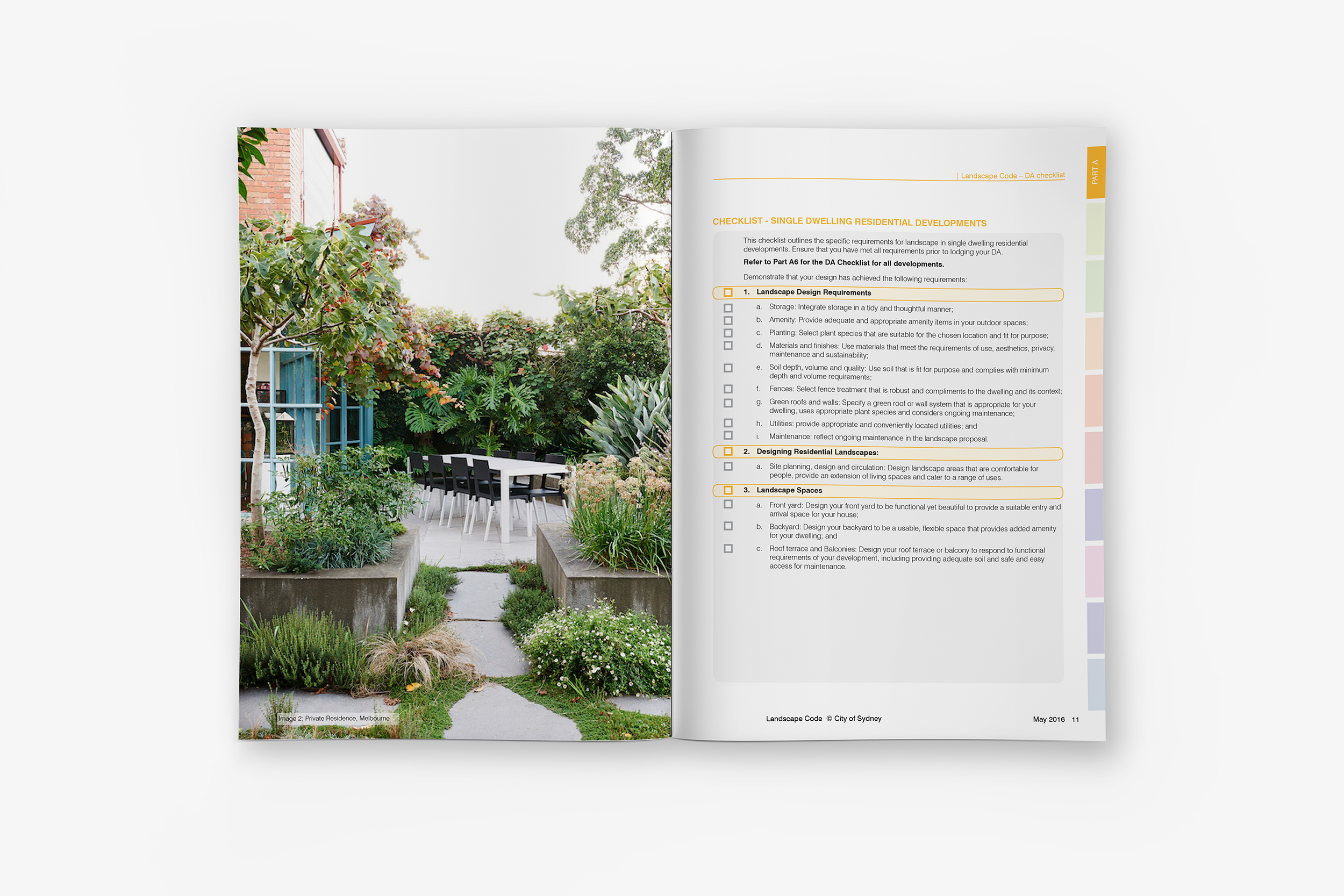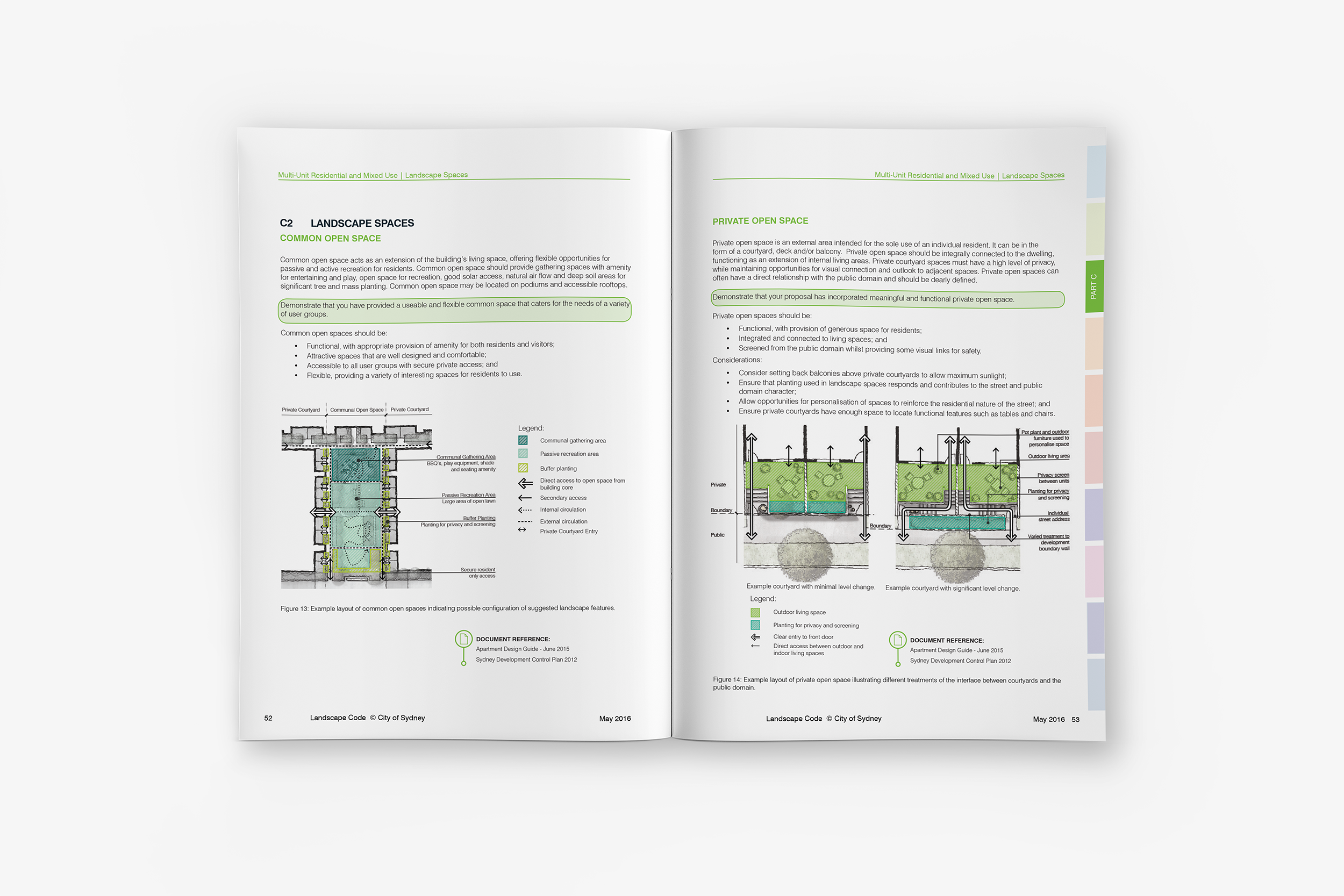 The Code has been developed for use by private landowners, developers, architects, landscape architects and other designers. The City of Sydney Council officers will use this publication as a key reference when assessing development applications. It provides guidance and suggestions for how private developments can create and enhance usable private landscape spaces, establish a positive relationship between private domain and built form, and contribute to the character and amenity of the local area, streetscape and broader neighbourhood.