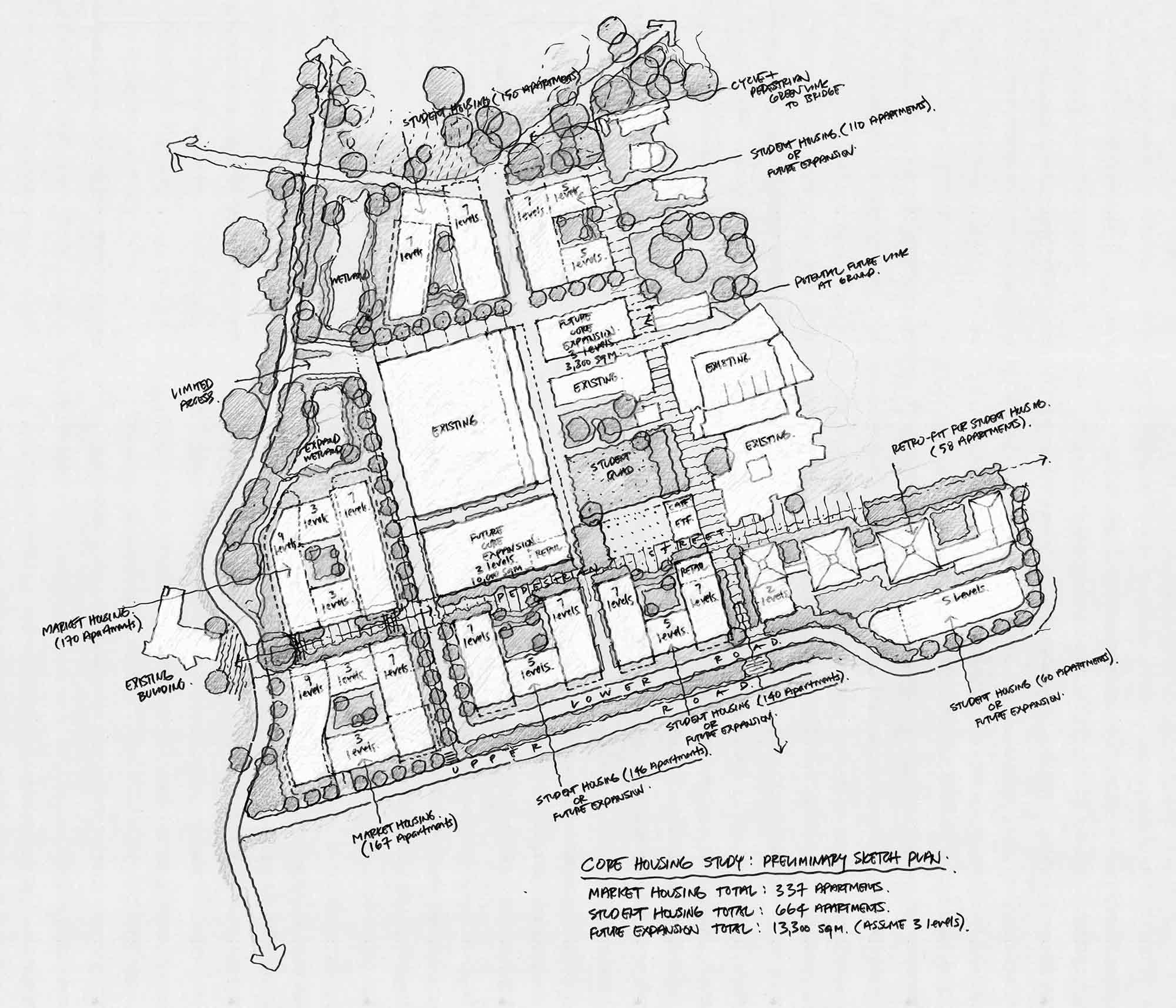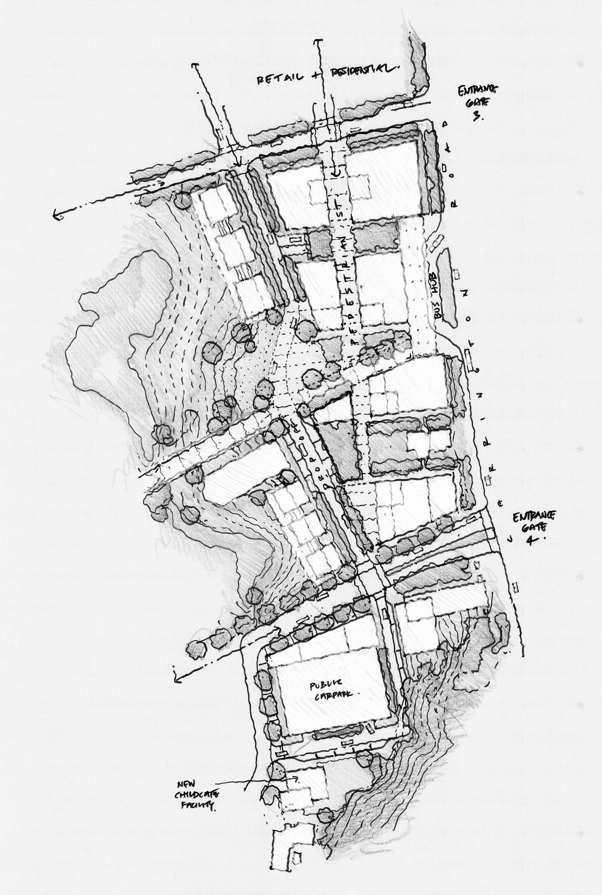 Ideas and scenarios were drawn and tested to provoke responses from the client and stakeholders, and to generate a principles-based urban strategy for the site. The concepts were driven by physical, social and economic (including demand, mix of uses and programs) considerations.